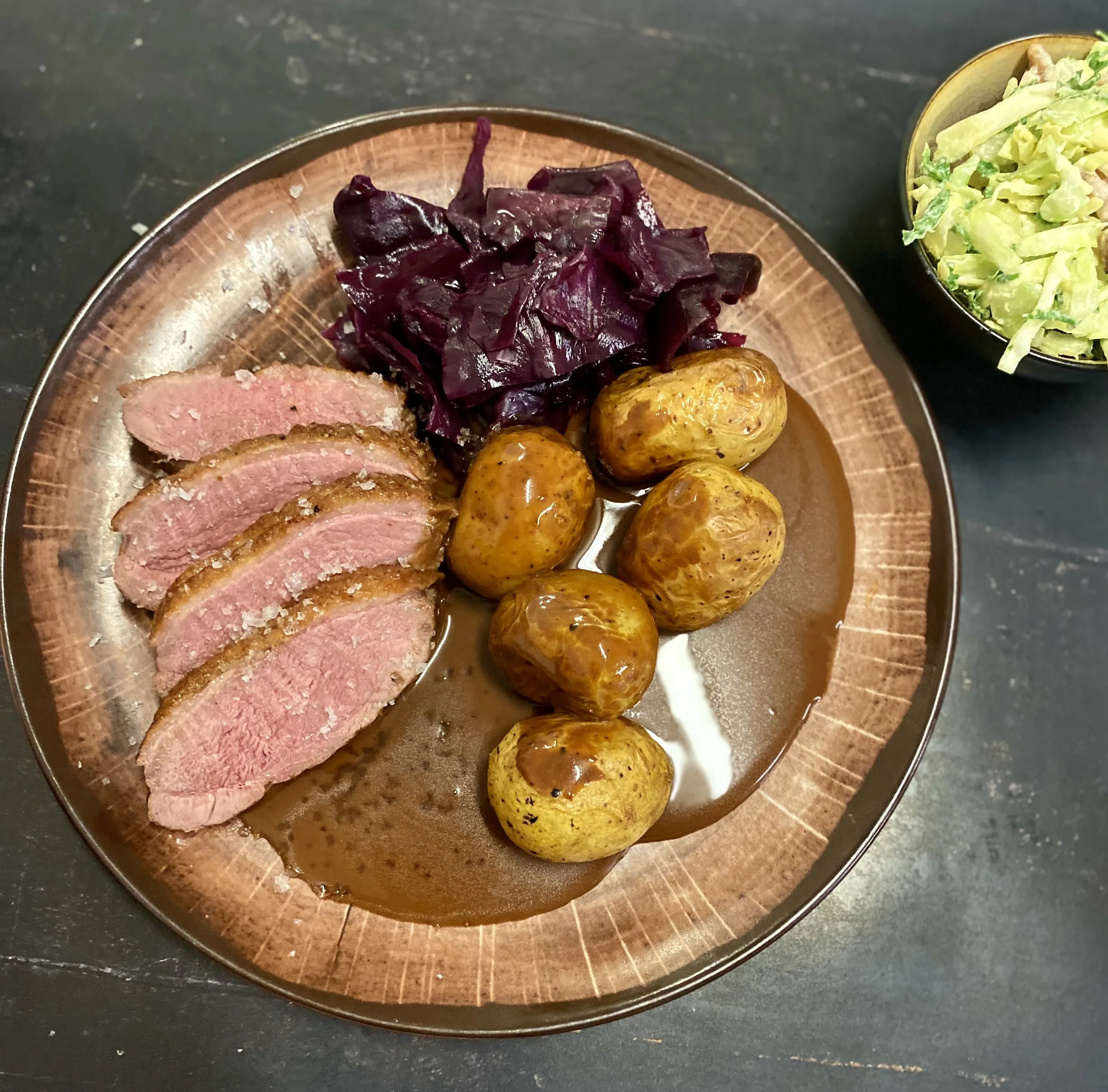 Rosastegt andebryst m/ hjemmelavet rødkål,